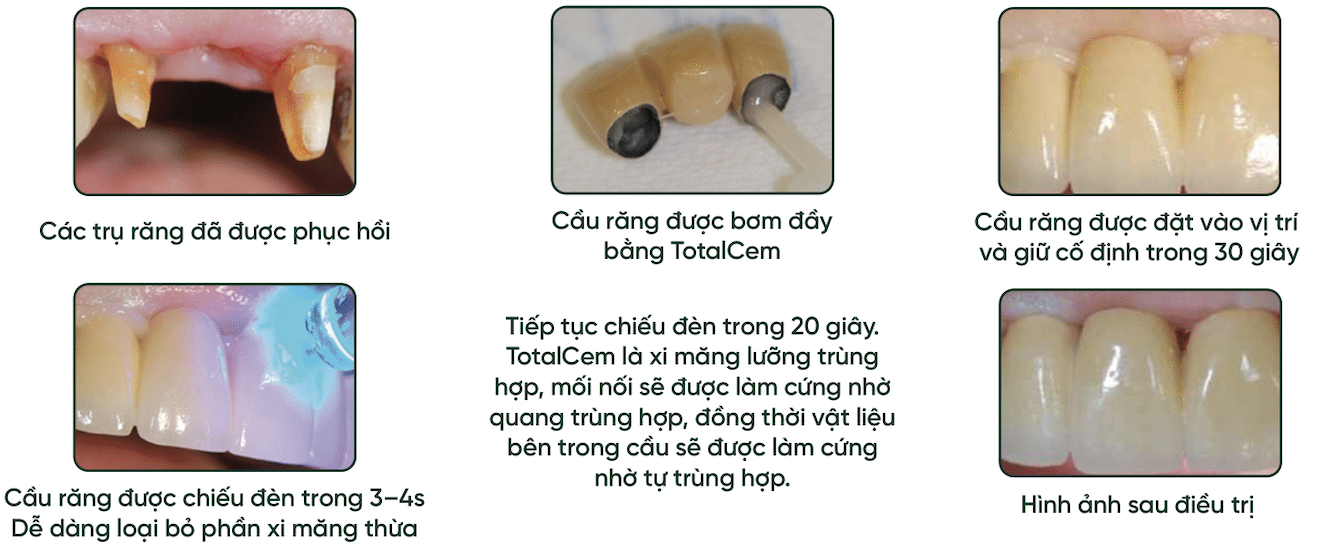Công dụng: Tất cả 4 bước trong 1: Cement + Bonding + Primer + Etching dán dính tốt cho những răng đã chết tuỷ, sứ kim loại, gắn kết thúc mão, cầu, inlay, onlay, chốt.